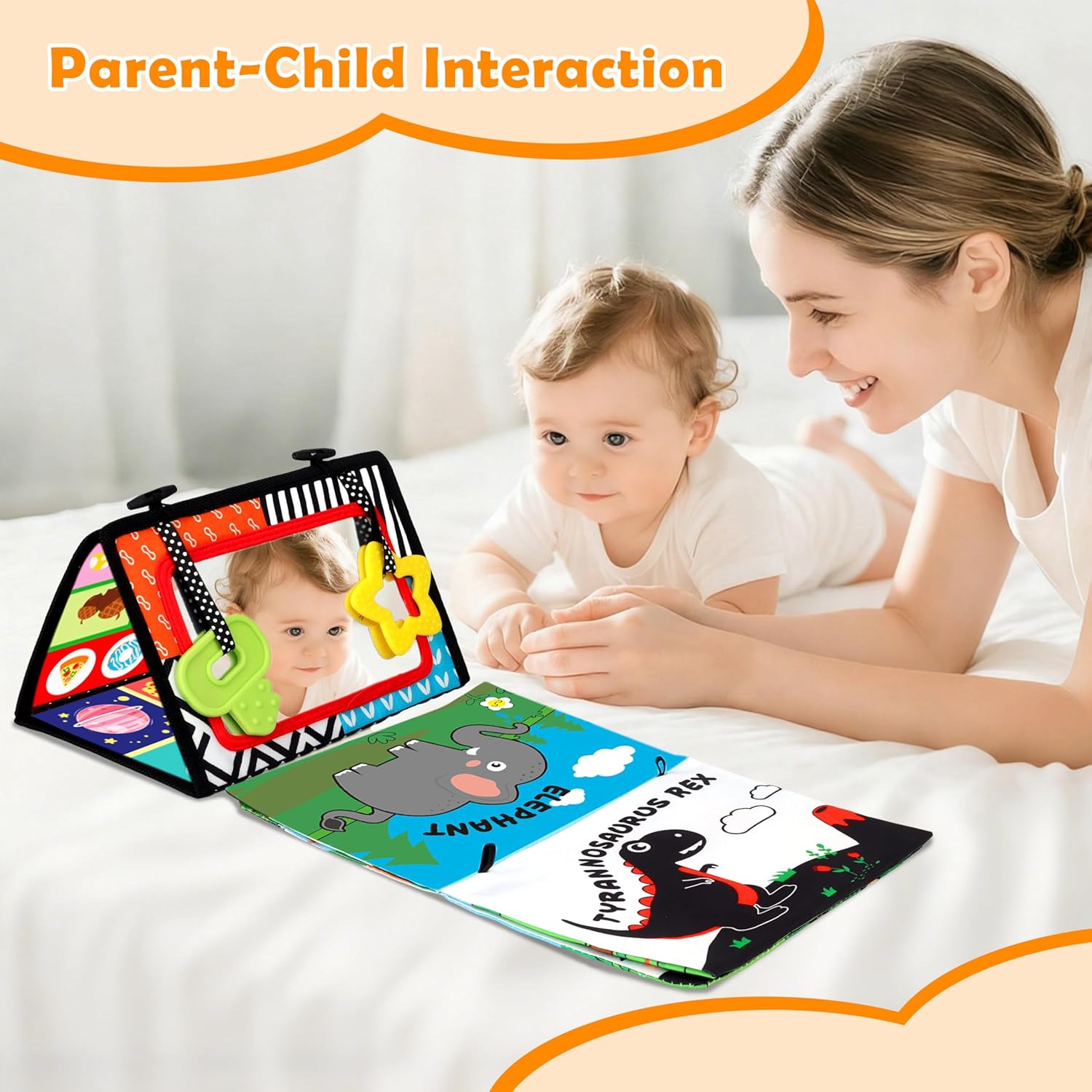 3 in 1 Tummy Time Mirror &Cute Animal Tails Cloth Book & Soft teethers for babies