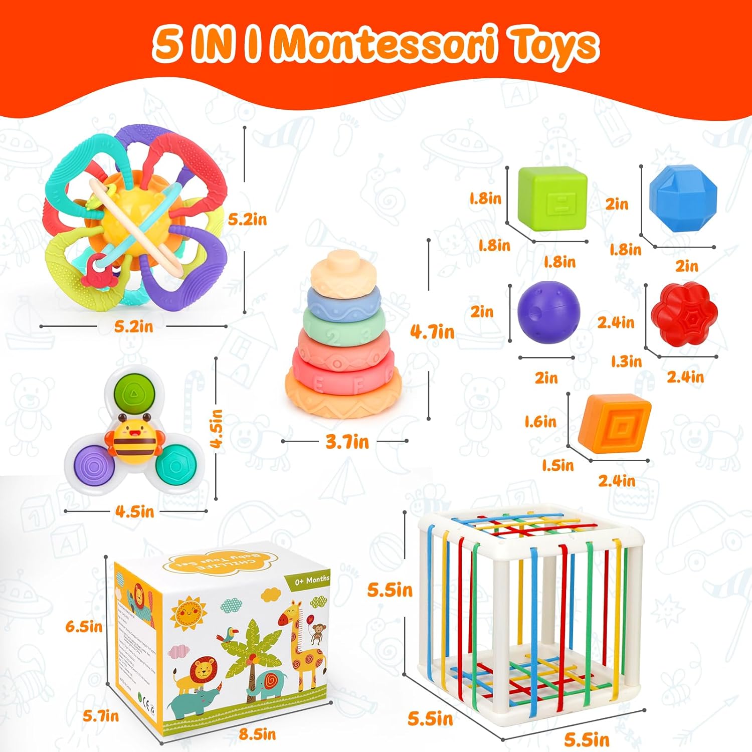 𝗕𝐚𝐛𝐲 𝐓𝐨𝐲𝐬 𝗦𝐞𝐭–Enhance your child’s creativity and imagination with montessori toys. The montessori toys for 1 year old set contains stacking toys,shape sorter cube, suction cup spinner, baby sensory teething toy.Different shapes and textures will provide babies with different tactile experiences. It’s the perfect toy for babies 6-12-18 months of early development learning.